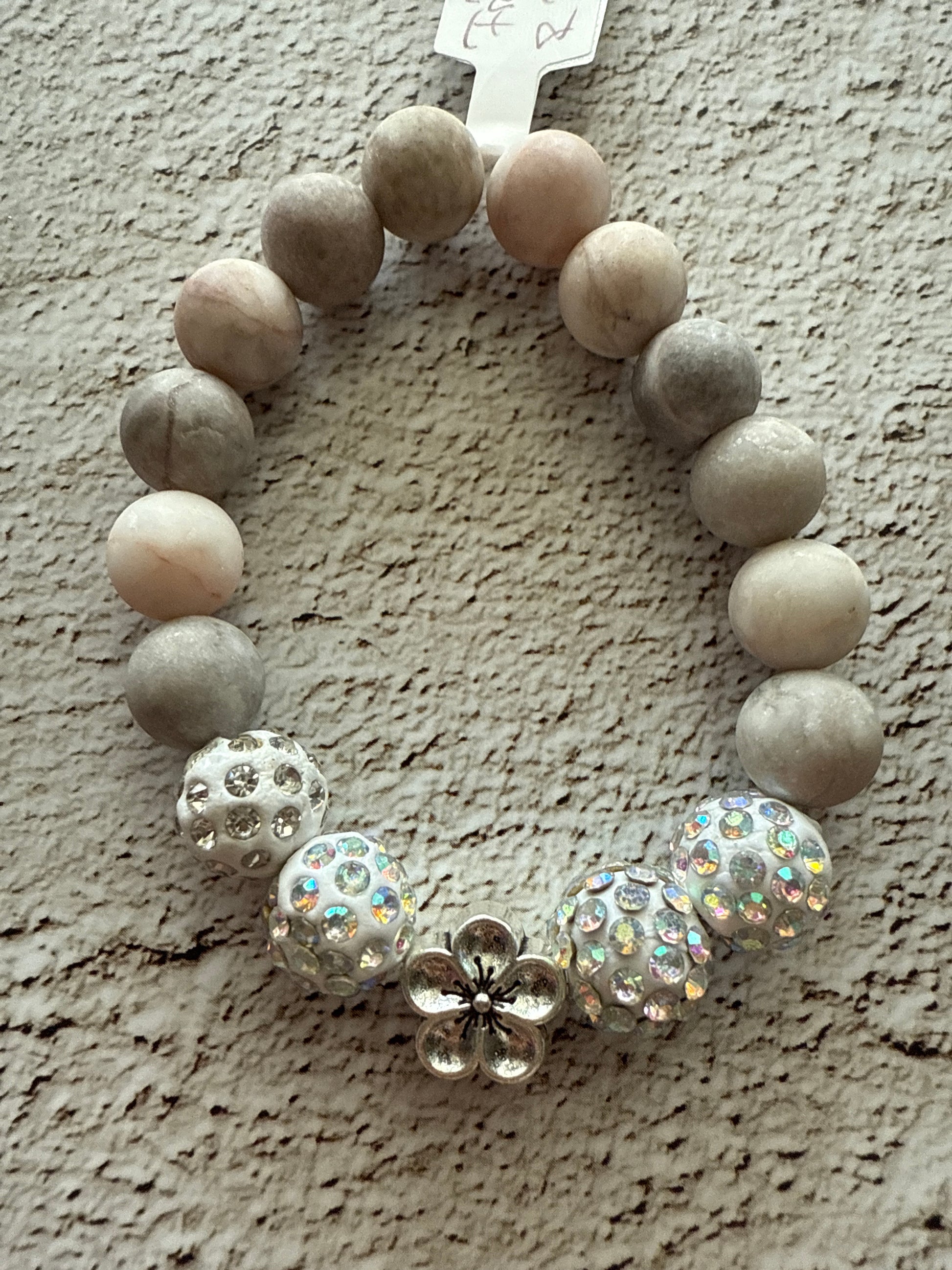Dieses elastische Kinderarmband (für 6–12 Jahre) verbindet Zebrajaspis, funkelnde Glitzersteine und eine zarte silberne Blume – für innere Balance, Erdung und spielerische Leichtigkeit.