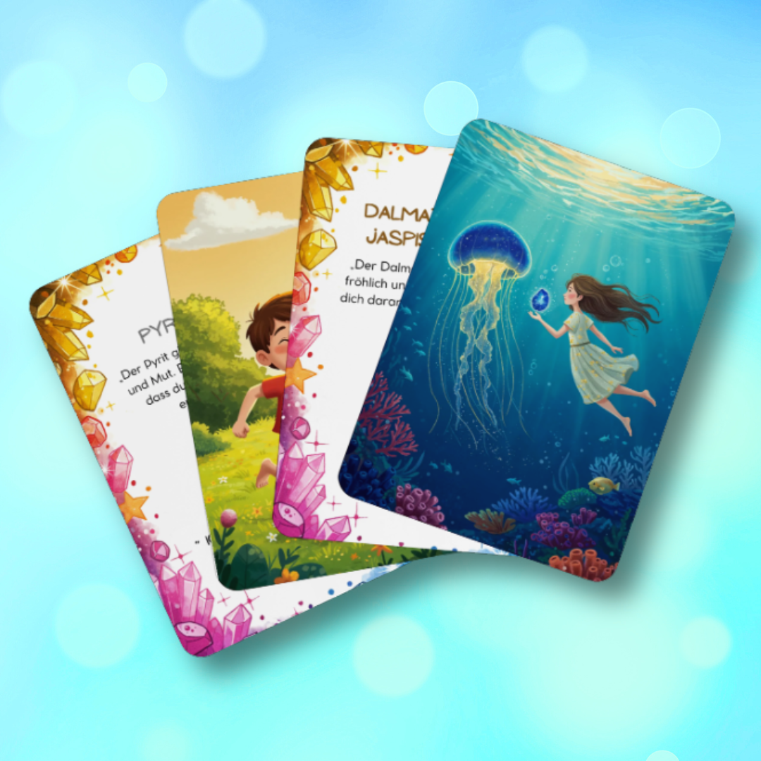 Lies im Buch eine Geschichte, suche die passende Karte und halte den echten Stein dazu in der Hand – so wird die Magie der Steine lebendig!